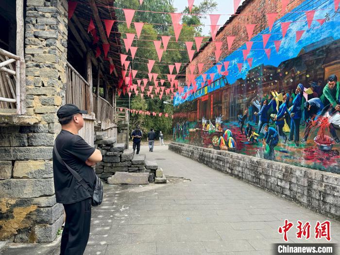 隴鑒古寨通過(guò)墻繪展示壯族文化風(fēng)俗。林潔琪 攝