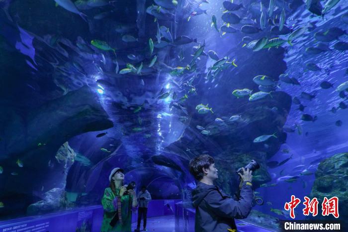 圖為中外文旅達(dá)人在西寧海洋館內(nèi)拍攝魚群。馬銘言攝