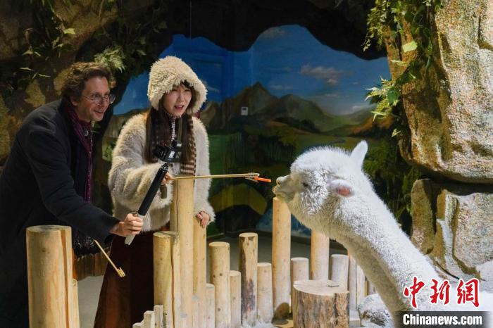 圖為中外文旅達(dá)人在西寧海洋館投喂羊駝。馬銘言攝