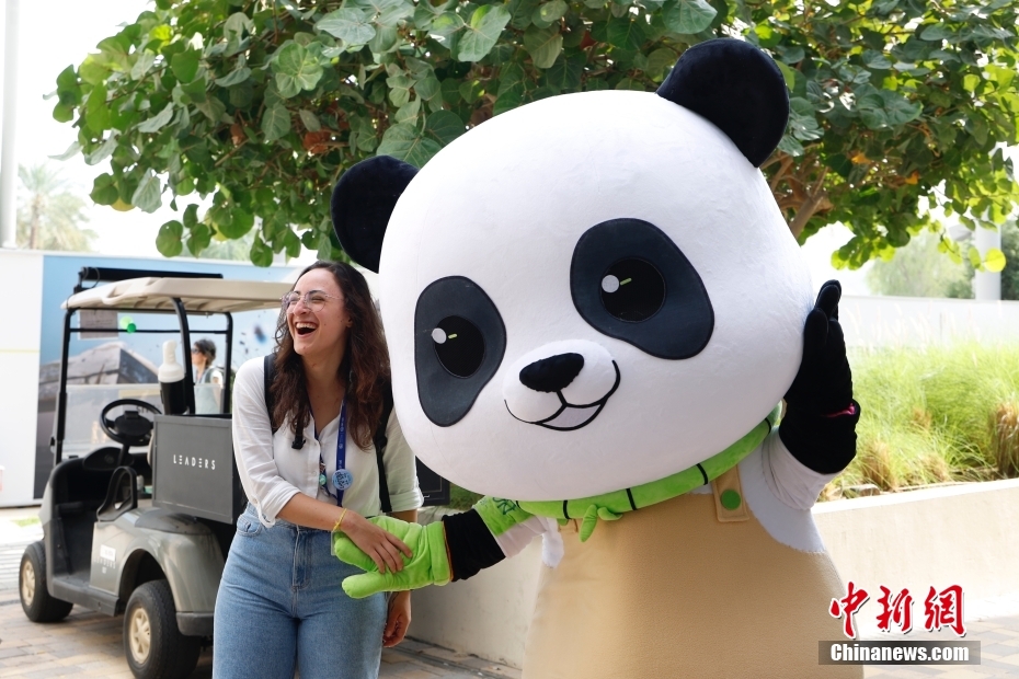 當?shù)貢r間12月2日,《聯(lián)合國氣候變化框架公約》第28次締約方大會(COP28)進入第三天,“中國角”熊貓玩偶受各國人士追捧,紛紛合影留念。中新社記者 韓海丹 攝