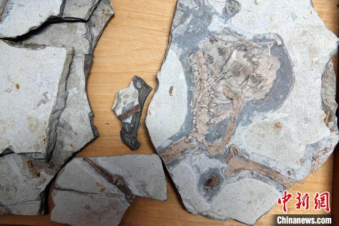 中國熱河生物群約1.3億年前地層中發(fā)現(xiàn)的翼龍新屬種——“華北克拉通翼龍”化石標(biāo)本。中新網(wǎng)記者 孫自法 攝