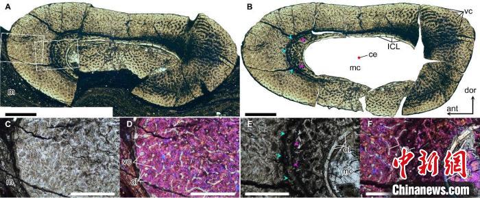 “華北克拉通翼龍”第二翼指骨骨干位置組織切片,顯示其相對較厚的骨壁以及不完整的生長停滯線。中國科學(xué)院古脊椎所 供圖
