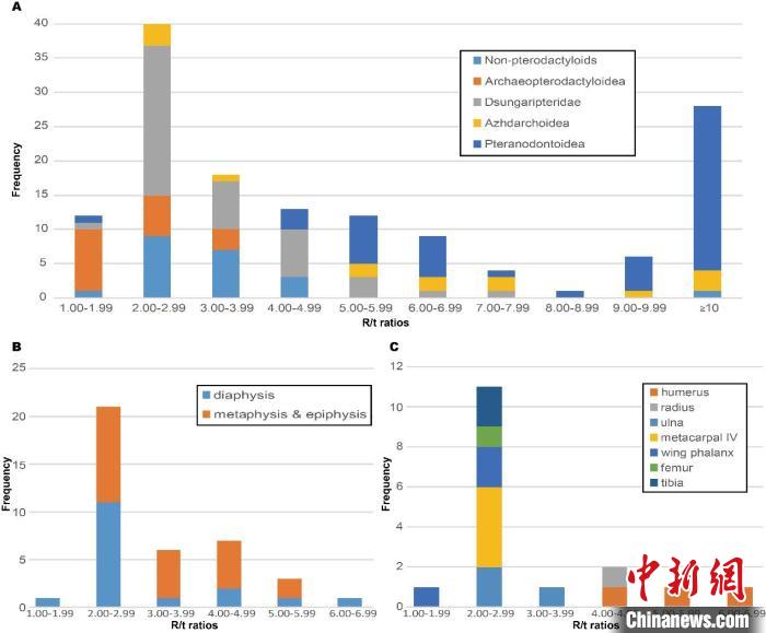 翼龍類群骨壁相對厚度統(tǒng)計直方圖。中國科學(xué)院古脊椎所 供圖