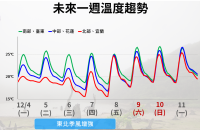臺灣地區(qū)氣象部門預(yù)測未來溫度變化。(臺氣象部門提供)