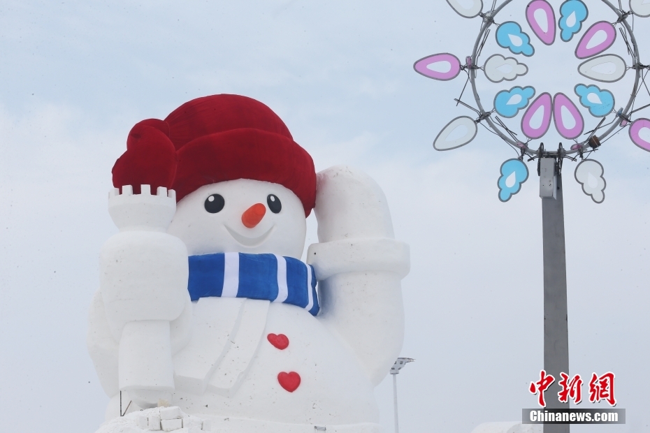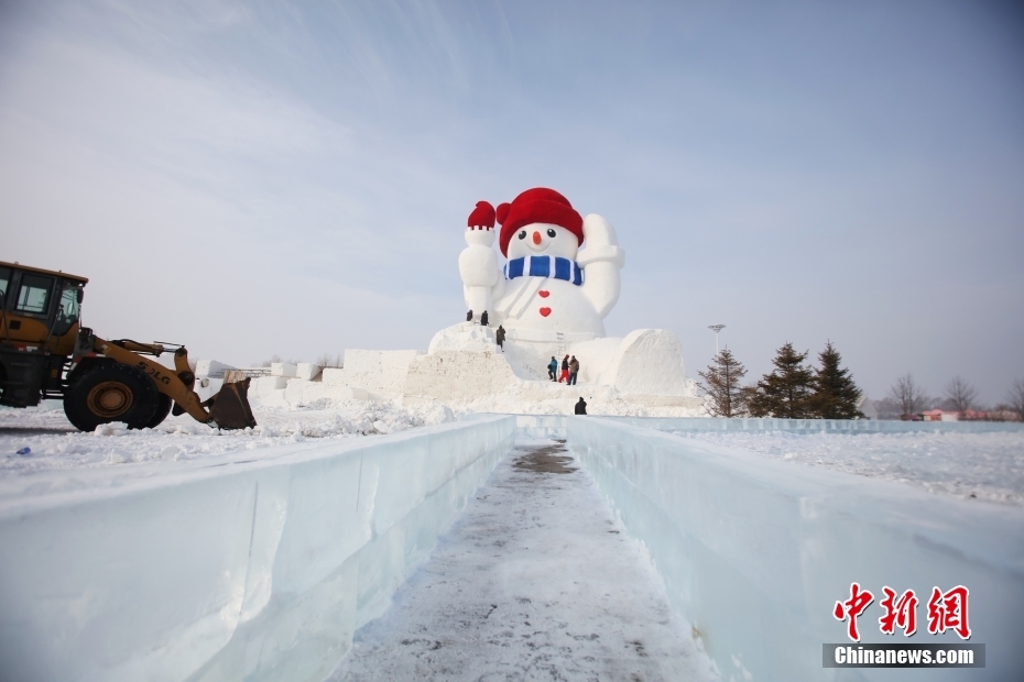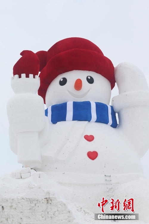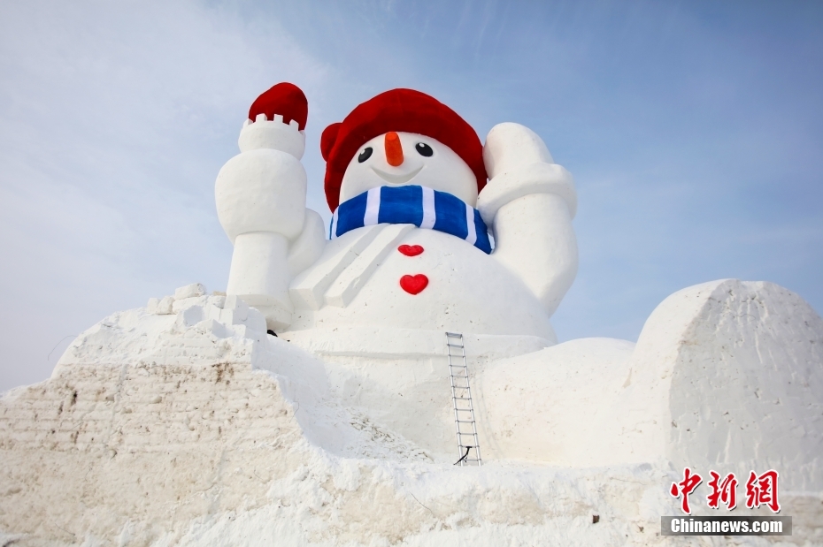 12月5日,一個高約20米的“大雪人”在黑龍江省哈爾濱市道里區(qū)亮相,這是哈爾濱今冬落成的首個“大雪人”。目前雪人主體已建成,工程進(jìn)入收尾階段。中新社發(fā) 于琨 攝