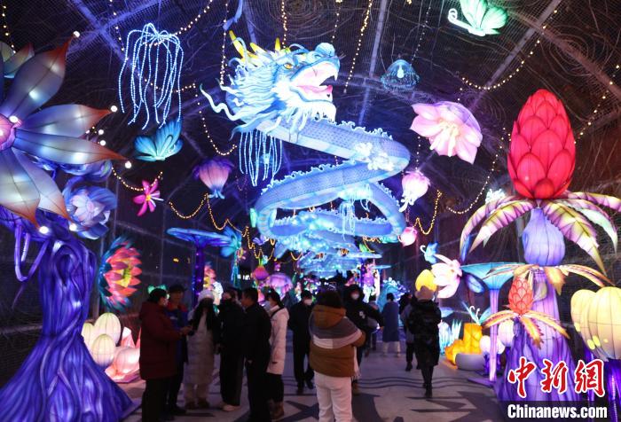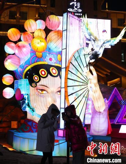 12月5日,寧夏銀川漫葡小鎮(zhèn)內(nèi)流光溢彩的花燈,吸引眾多市民前來(lái)觀賞。中新網(wǎng)記者 于晶 攝