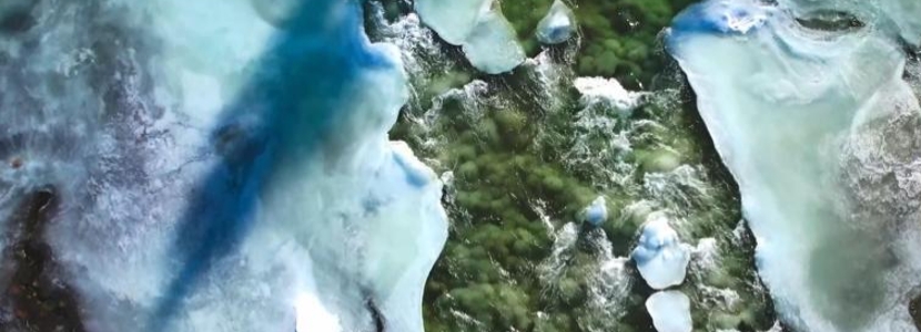 連日來,由于冷空氣影響,新疆阿勒泰地區(qū)富蘊縣境內(nèi)的額爾齊斯大峽谷出現(xiàn)唯美霧凇景觀。峽谷中彌漫著薄薄的霧氣,樹木被晶瑩剔透的霧凇包裹著,朵朵“瓊花”在微風中搖曳,如夢如幻,冬日的河谷,處處呈現(xiàn)著寧靜空靈之美。圖為碧綠的河水似已將潔白的冰壁暈染成了綠色。阿依多斯·阿根別克 攝