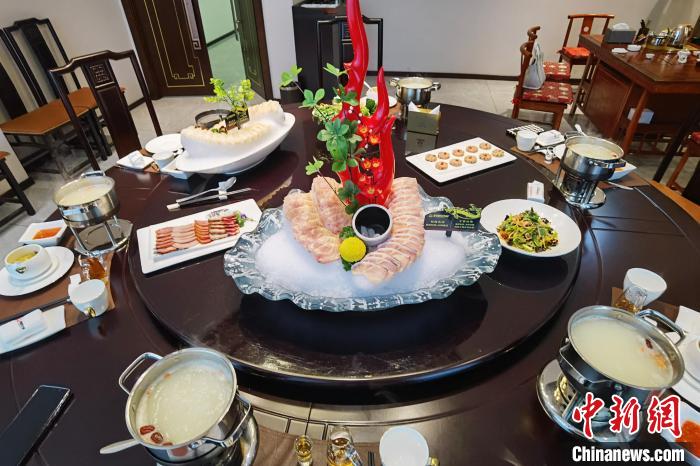 新鮮、豐富的鱘鰉全魚火鍋涮品。中新社記者 王琳 攝