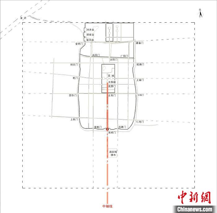 鄴城平面布局與中軸線示意圖。鄴城考古隊供圖