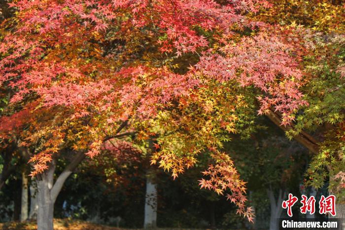 圖為南昌縣鳳凰溝風(fēng)景區(qū)的紅葉在陽(yáng)光照耀下熠熠生輝。虞亮亮 攝