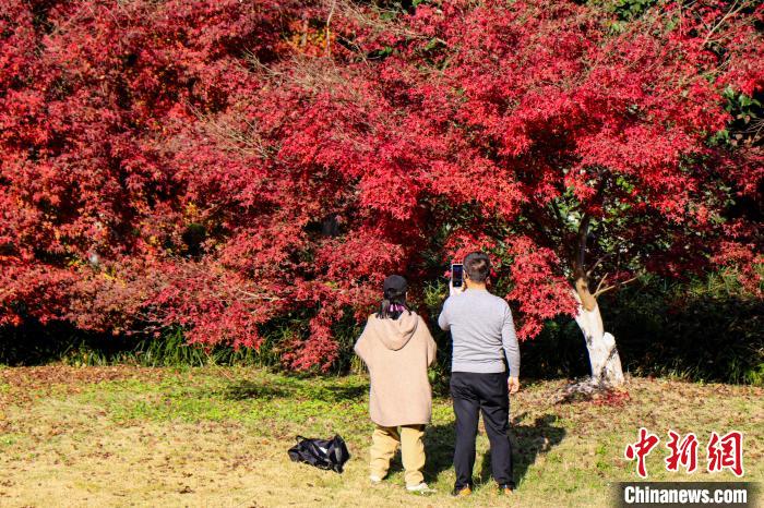 圖為南昌縣鳳凰溝風(fēng)景區(qū)的美麗紅葉吸引游客拍照“打卡”。虞亮亮 攝