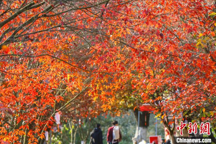 圖為南昌縣鳳凰溝風(fēng)景區(qū)的醉美紅葉吸引游客參觀。虞亮亮 攝
