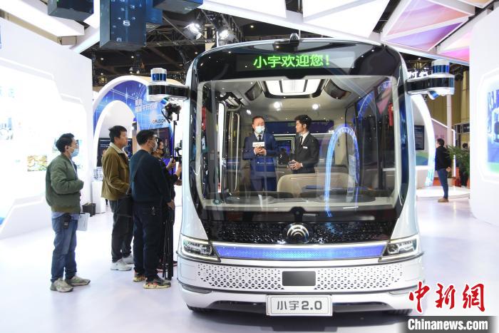圖為應(yīng)用5G技術(shù)的無(wú)人駕駛小客車?!⊥跤?攝