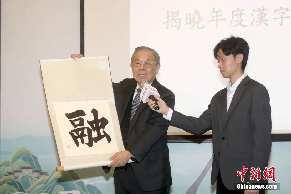 8日舉行的“2023海峽兩岸年度漢字評(píng)選”活動(dòng)揭字典禮上,臺(tái)灣淡江大學(xué)書法研究室主任張炳煌揭曉年度代表字為“融”。