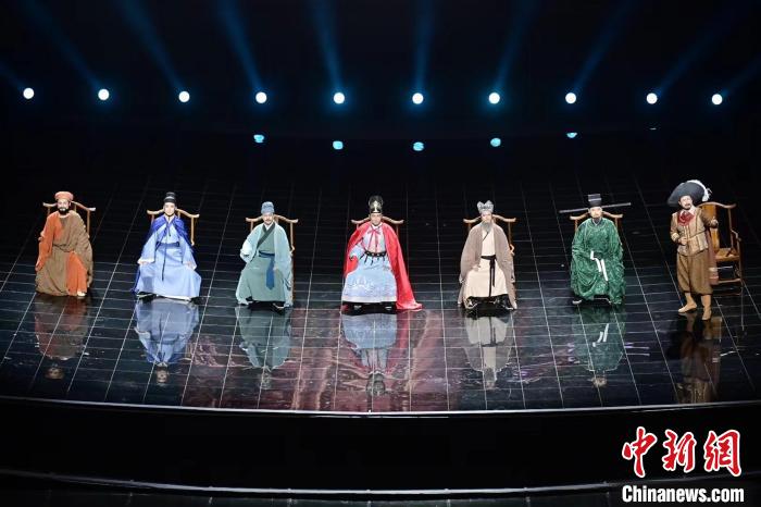 8日,在大型情景音舞詩《萬里海絲路·千年刺桐情》中,一位位與泉州有關(guān)聯(lián)的中外歷史名人“穿越”到舞臺現(xiàn)場。中新網(wǎng)記者 李南軒 攝