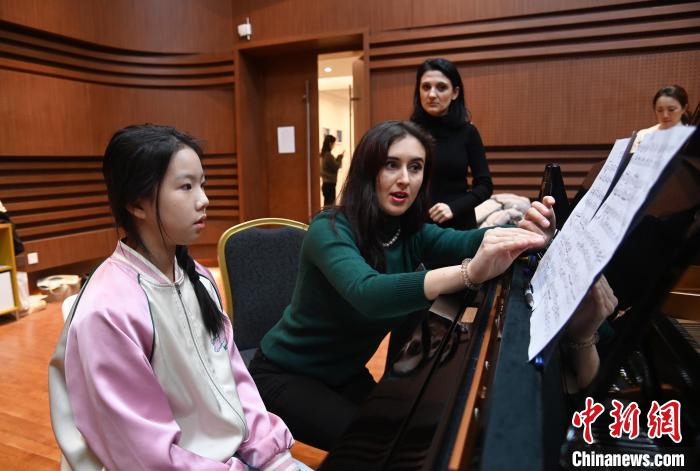 中新網(wǎng)廊坊12月10日電 (宋敏濤 楊雅琪)10日,在河北省廊坊市絲綢之路國際藝術(shù)交流中心的國際課堂,來自羅馬尼亞的鋼琴家辛茲安娜·米爾切亞正在耐心地指導(dǎo)孩子們的鋼琴彈奏技巧。“很開心再次來到絲綢之路國際藝術(shù)交流中心,希望通過自己的授課可以讓孩子更深刻感受鋼琴的美妙,也希望能有更多機(jī)會(huì)和更多中國朋友進(jìn)行音樂文化上的溝通與交流?!毙疗澃材取っ谞柷衼喺f。