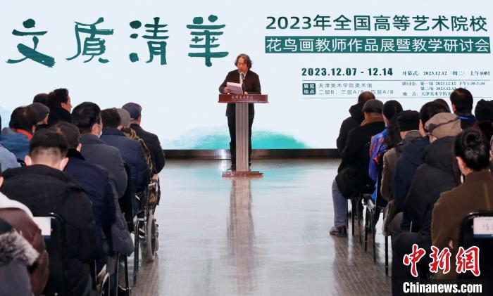 中新網(wǎng)天津12月12日電 (劉俊蒼)12日,“文質(zhì)清華——2023年全國高等藝術院?;B畫教師作品展暨教學研討會”在天津美術學院舉行。此次活動是中國花鳥畫界高等級學術活動,展出的作品在工筆、寫意、現(xiàn)代水墨三種主要形態(tài)下,涵蓋多種主題和多樣風格,比較系統(tǒng)地呈現(xiàn)了我國當代花鳥畫創(chuàng)作的面貌。