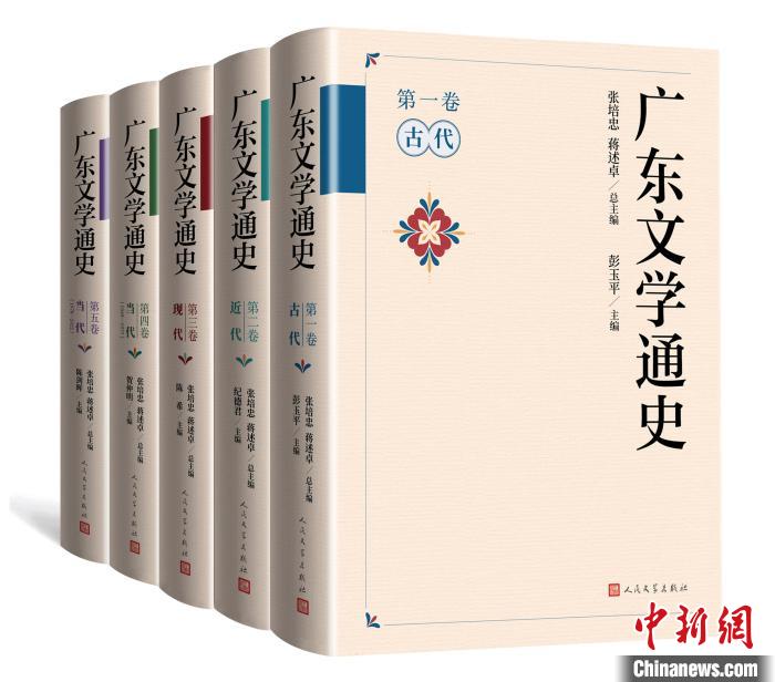 全書分為古代卷、近代卷、現(xiàn)代卷、當代卷(上下)共5卷約240萬字,2023年5月由人民文學出版社出版。通過新的史料的發(fā)現(xiàn)、新的理論的概括、新的方法的應(yīng)用,全書梳理厘清廣東文學與灣區(qū)文學特質(zhì),著力打造有信息含量、有思想容量、有情感力量的文學史,填補廣東文學通史研究空白,構(gòu)建融通中外、富有嶺南文化特色的學術(shù)體系和話語體系。