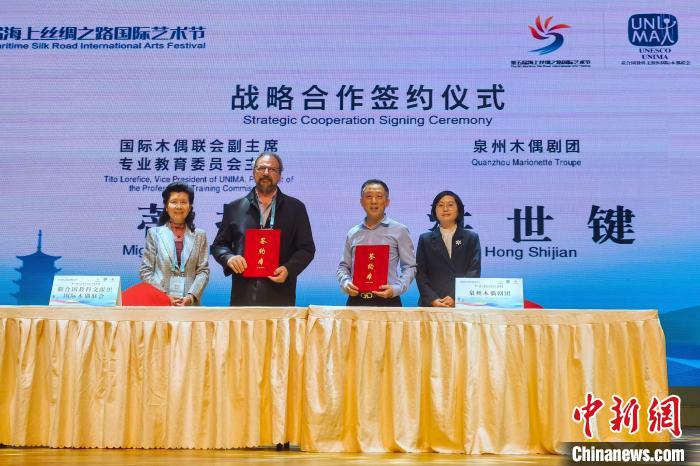 12月12日,聯(lián)合國教科文組織國際木偶聯(lián)會與泉州市木偶劇團簽訂合作協(xié)議。中新網(wǎng)記者 孫虹 攝
