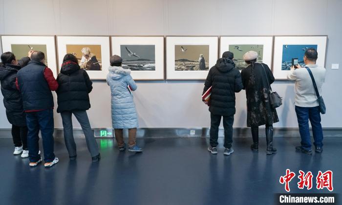 圖為套色版畫·連環(huán)畫《孤雁》吸引眾多市民參觀。馬銘言 攝