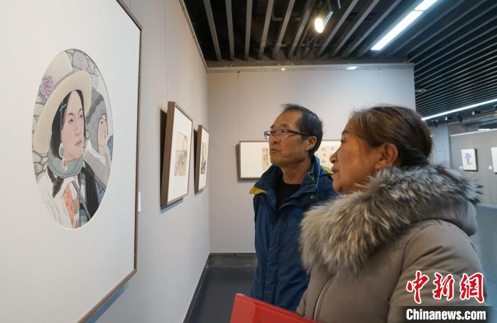 圖為市民參觀青海畫院第二屆院展。馬銘言 攝