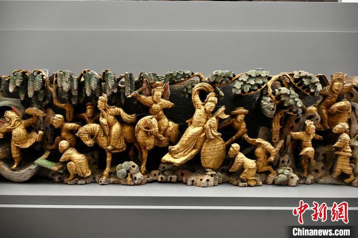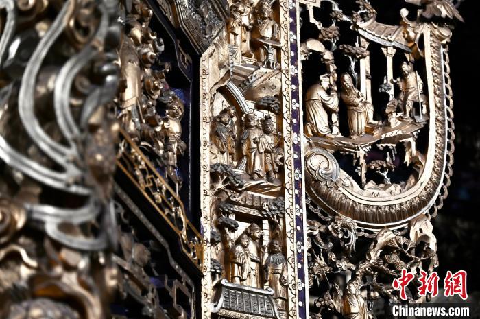 圖為重點(diǎn)展品、嶺南地區(qū)現(xiàn)存最大的木雕神樓“番禺神樓”。中新網(wǎng)記者 李志華 攝