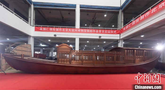 12月13日,由中國工藝美術(shù)大師、國家級(jí)非遺銅雕技藝代表性傳承人朱炳仁領(lǐng)銜制作的銅船作品在杭州臨平舉行晉京啟運(yùn)儀式。銅船將“駛進(jìn)”新建的北京大運(yùn)河博物館(首都博物館東館),與6000件套上展文物一同于2023年底正式亮相。