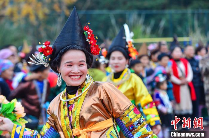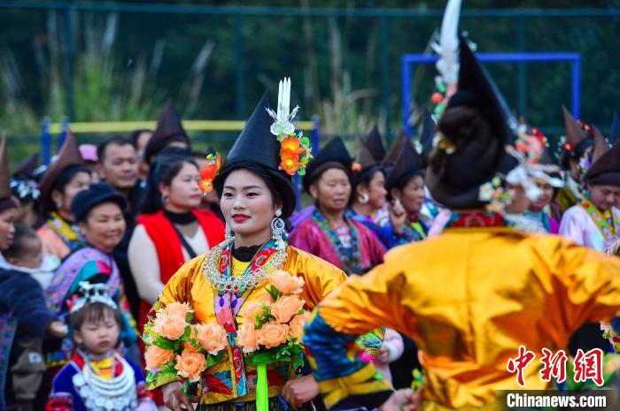 12月13日,貴州省黔東南苗族侗族自治州從江縣斗里鎮(zhèn)各村寨迎來(lái)一年一度的苗族傳統(tǒng)蘆笙節(jié),當(dāng)?shù)卮迕駛兩碇k麗多姿的民族服飾,與來(lái)自湖南、廣西等地的少數(shù)民族同胞,歡聚在蘆笙堂上,盡情展示自己精致的服飾和亮麗的盛裝銀飾。