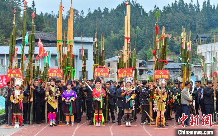 苗族同胞在貴州省從江縣斗里鎮(zhèn)臺(tái)里村參加一年一度的蘆笙節(jié)活動(dòng)。盧忠南 攝