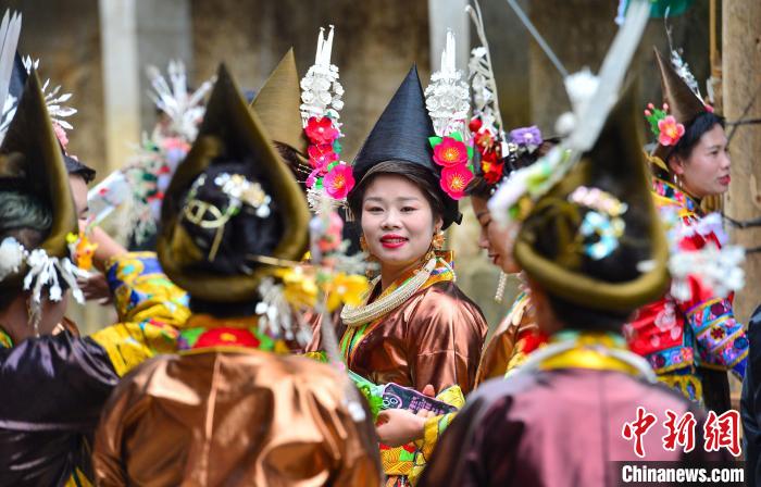 身著盛裝的苗族同胞在貴州省從江縣斗里鎮(zhèn)臺(tái)里村參加一年一度的蘆笙節(jié)活動(dòng)。盧忠南 攝