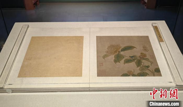 遼寧博物館藏宋代緙絲趙佶木槿花卉圖冊頁。中新社記者 應(yīng)妮 攝