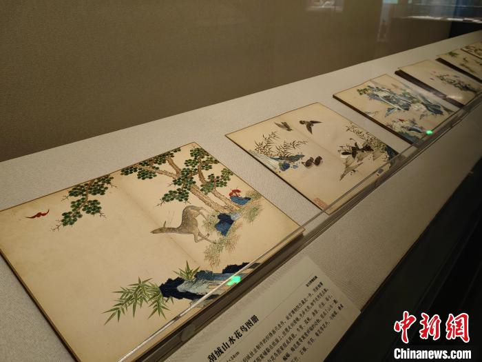 故宮博物院藏刮絨山水花鳥圖冊。中新社記者 應(yīng)妮 攝