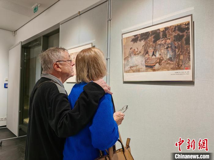 來賓觀賞年畫。 (柏林中國文化中心供圖)