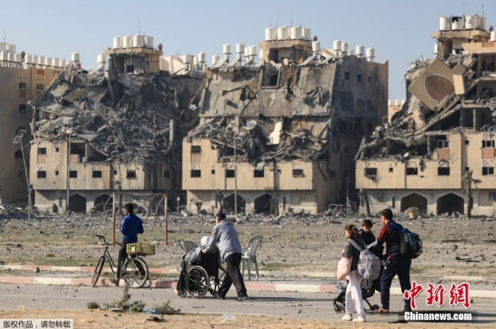 當(dāng)?shù)貢r(shí)間12月2日,加沙地帶南部汗尤尼斯Hamad居民區(qū)的民眾逃離家園。