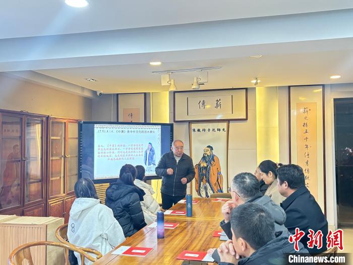 安徽合肥15日晚迎今冬首場(chǎng)降雪。合肥市廬陽(yáng)區(qū)薪傳茶書房里卻暖意融融,該書房主人、臺(tái)灣國(guó)學(xué)教授朱榮智正為《中庸》第二講做最后的準(zhǔn)備。