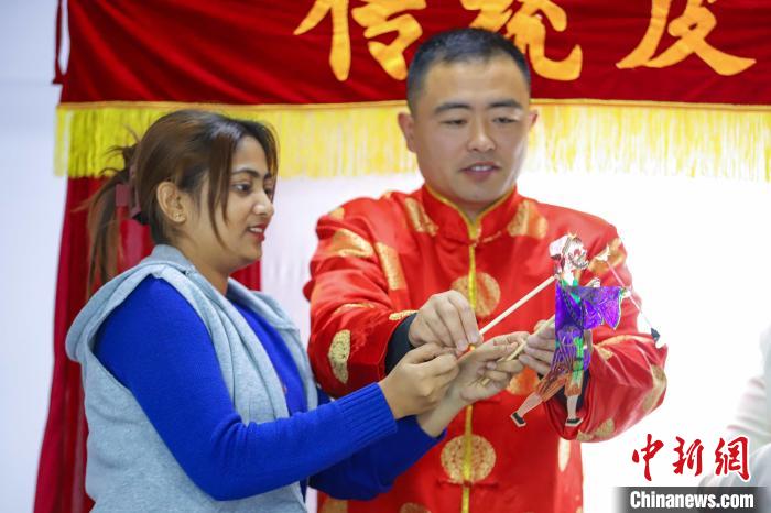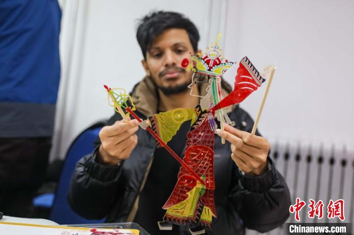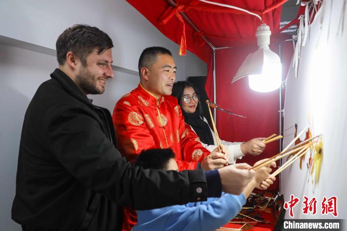 12月15日,來自俄羅斯、巴基斯坦、越南等國家和地區(qū)的外國友人走進山東省青島市李滄區(qū)的一處新時代文明實踐站,體驗中國的傳統(tǒng)皮影戲并學(xué)習(xí)毛筆書法。