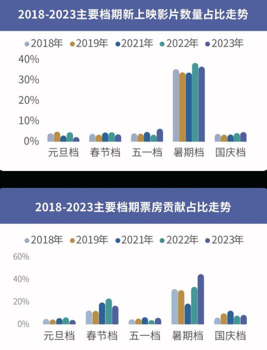 白皮書指出,為降低強檔期依賴,內(nèi)容供給側(cè)持續(xù)優(yōu)化中,“周末檔”概念加強,影片數(shù)量及票房占比均有一定提升,只是培育“周末檔”仍需進一步提升類型多樣、題材多元化的影片供給。