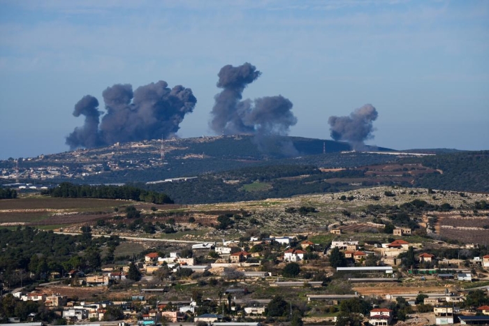 這張12月16日在黎以邊境以色列一側(cè)拍攝的照片顯示,黎巴嫩南部的一座村鎮(zhèn)遭以軍襲擊后升起濃煙。新華社發(fā)(阿亞爾·馬戈林攝/基尼圖片社)