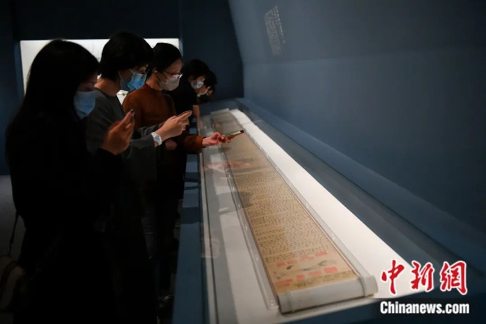 中國(guó)國(guó)家博物館展出的趙孟頫書《道德經(jīng)》卷吸引參觀者。趙文宇 攝