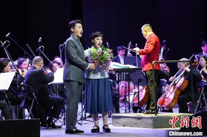 圖為高鵬(左)和王娜在演唱歌劇《白毛女》中曲目《北風(fēng)吹扎紅頭繩》。中新網(wǎng)記者 瞿宏倫 攝