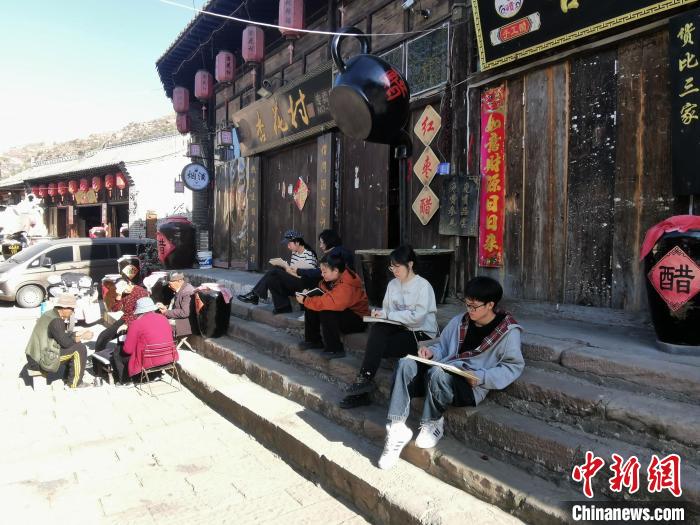 漫步于被歲月打磨得光亮的石板街道上,不禁感慨,“這黃土高原的深溝大壑之中,竟生出如此一座傳奇古鎮(zhèn)?!币惶幑派畔愕牡赇侀T前,數(shù)位寫生的大學生認真勾勒著線條。閑適的老人玩著撲克牌。不遠處的店鋪里,用方言直播的店家,正介紹著當?shù)靥禺a(chǎn)。(完)