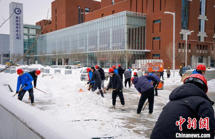 12月15日,在雄安新區(qū)啟動區(qū)的雄安創(chuàng)新研究院科技園區(qū)項(xiàng)目,管理人員正在清理現(xiàn)場積雪。任雙歡 攝