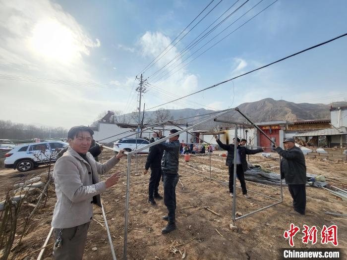 圖為青海海東市官亭鎮(zhèn)寨子村村民正在搭建帳篷。胡友軍 攝