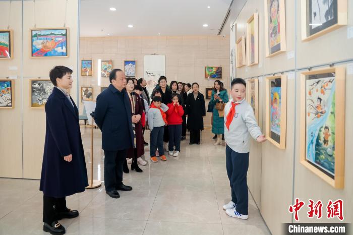 首屆海峽兩岸大同小學(xué)學(xué)生繪畫作品展開幕。長沙市臺辦 供圖