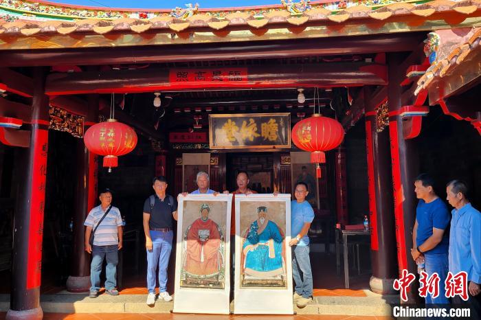 10月30日,福建省漳州市長(zhǎng)泰區(qū)江都村連氏宗親在連氏祖厝“瞻依堂”向臺(tái)灣宗親贈(zèng)送連氏先祖畫(huà)像。(長(zhǎng)泰區(qū)委臺(tái)港澳辦 供圖)