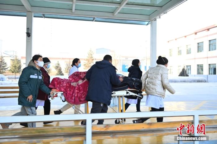 12月19日,甘肅省臨夏州積石山縣人民醫(yī)院內(nèi),醫(yī)務(wù)人員運送傷者。 中新社記者 李亞龍 攝