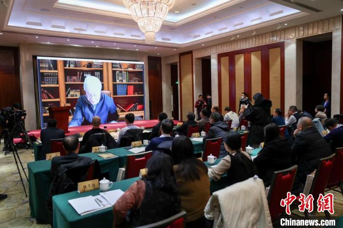 中國(guó)文化遺產(chǎn)研究院教授級(jí)高級(jí)工程師黃克忠通過(guò)視頻致辭。武俊杰攝