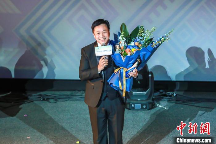 圖為頒發(fā)中國—東盟電影共創(chuàng)大使榮譽獎杯現(xiàn)場。主辦方供圖