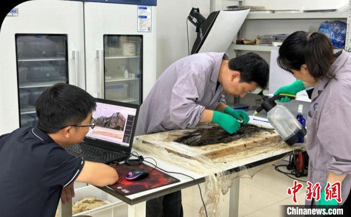 工作人員在揭取楚簡。(中國國家文物局供圖)
