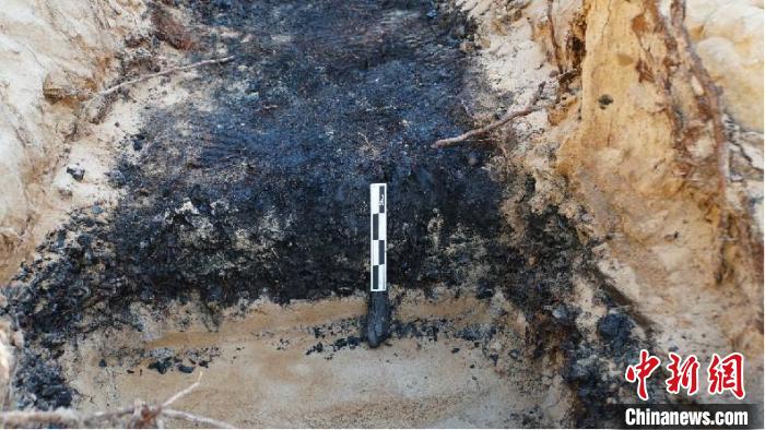 蒙古國高勒毛都2號墓地一座墓葬內部發(fā)現積炭。河南省文物考古研究院供圖